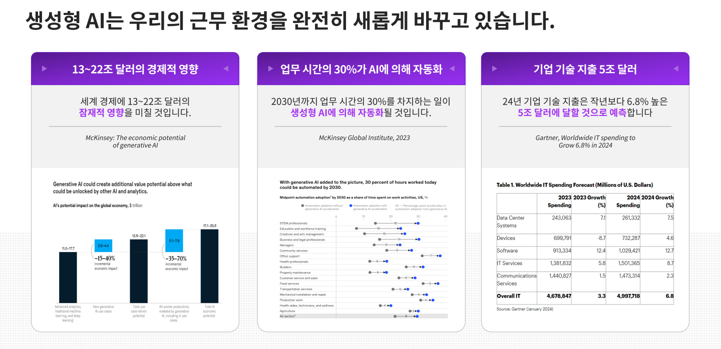 생성형 AI는 실제 업무 환경에 도입했을 때 얼마나 ‘쓸 만’ 할까요? 업무 자동화를 통해 실제로 얼만큼의 효율적인 결과를 도출할 수 있을지, 어떤 혁신을 불러올 수 있을지 실무자들은 궁금할 것입니다.