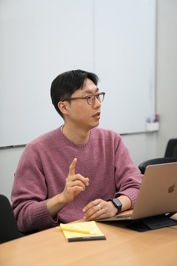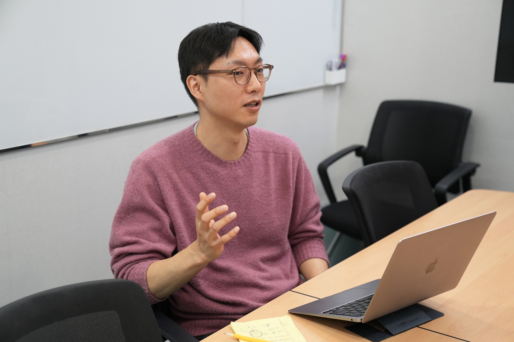 인터뷰를 하고 있는 EX팀 장명성 팀장